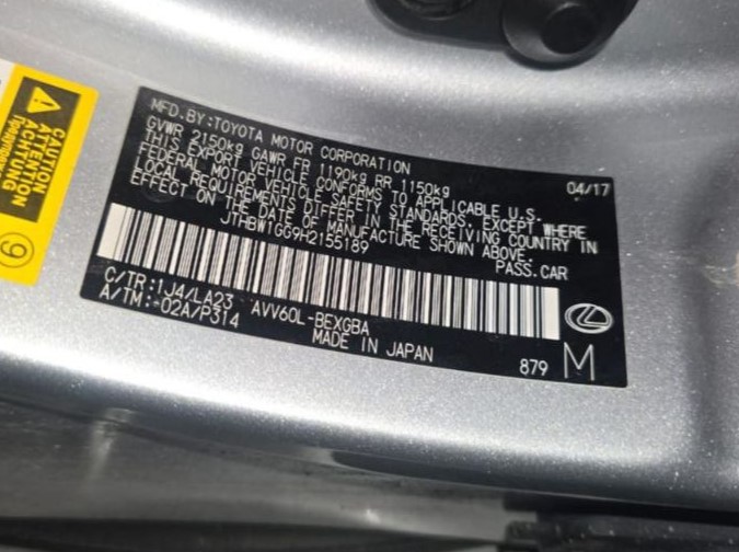 VIN: JTHBW1GG9H2155189